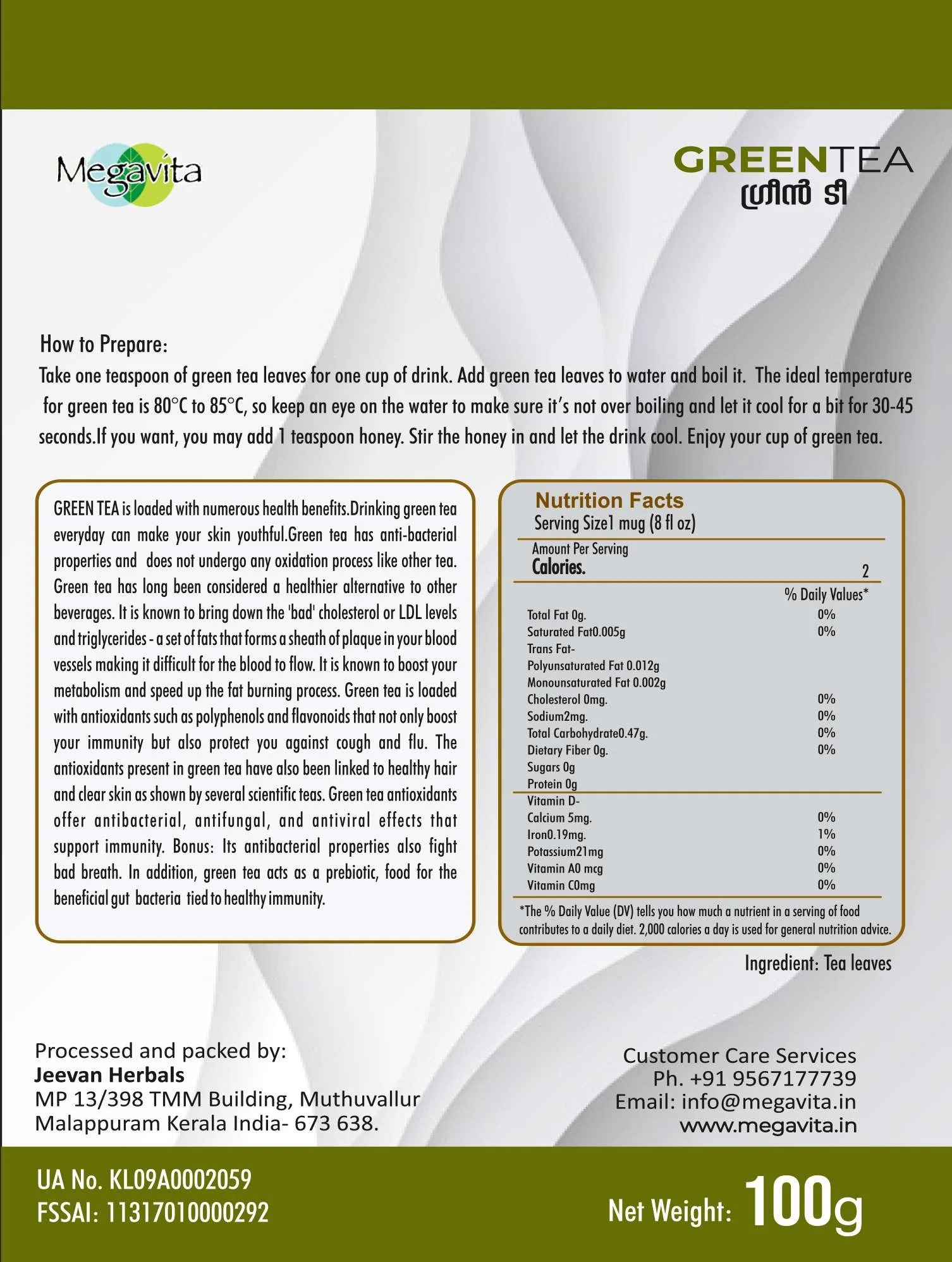 Megavita GREEN TEA is a healthy beverage. It contains a range of nutrients, antioxidants, flavonoids, phytonutrients, and other beneficial compounds. Because of these elements, green tea has numerous health and beauty benefits. It can help with weight management, control cholesterol, boost our immune system, reduce the risk of various diseases, and decrease the impact of harmful toxins and microbes on our bodies. When our immune system is strong, our body can fight off various pathogens and infections more efficiently. Green tea can help us achieve this goal by reducing the impact of harmful substances and microbes on our bodies. It can also reduce the risk of chronic diseases, such as cancer, diabetes, heart disease, and neurodegenerative disorders. Overall, green tea is an excellent beverage for improving our health and well-being. It can help us reduce the impact of various harmful substances on our bodies and improve our immune system's strength, making it easier for us to fight off infections and illnesses.