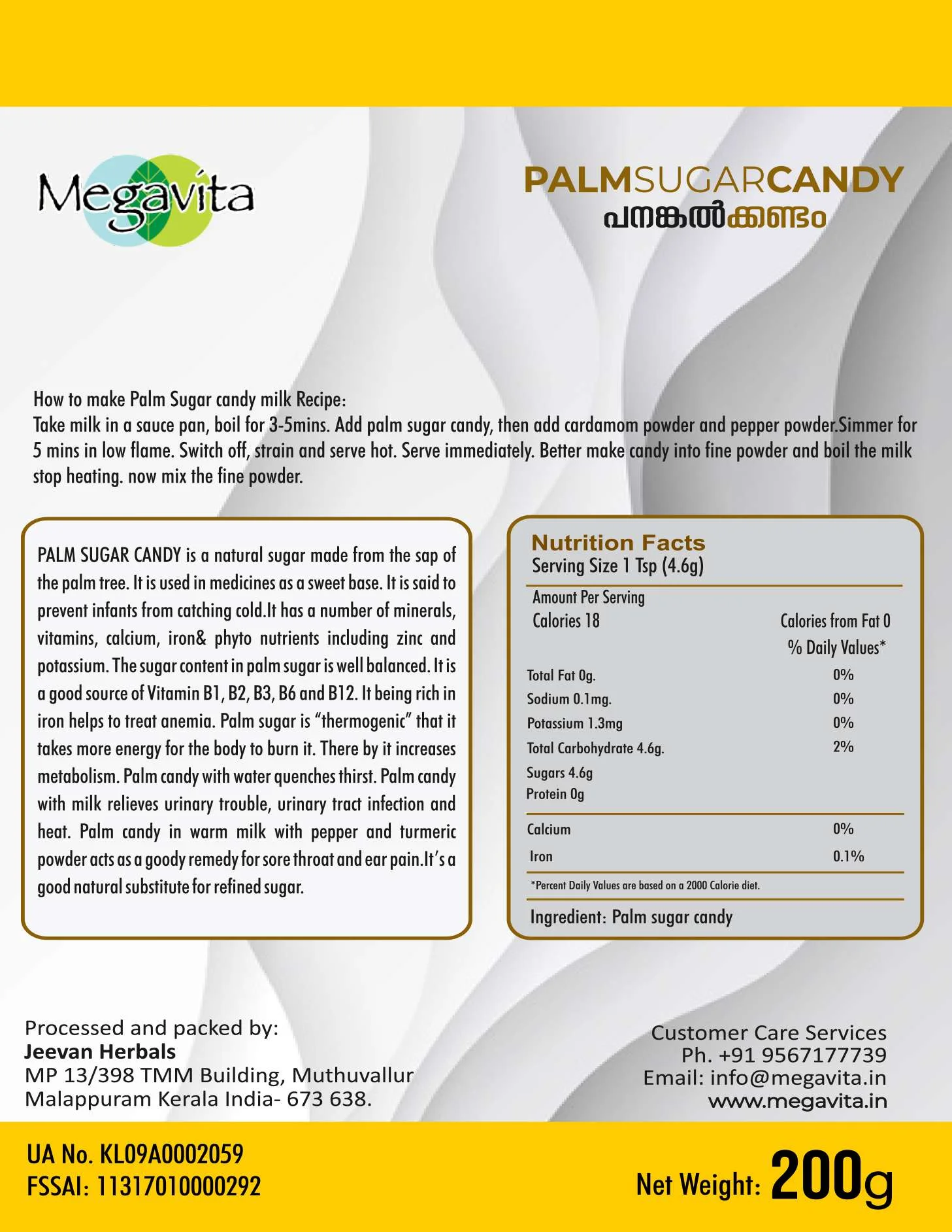 Megavita PALM SUGAR CANDY also known as "panankalkandam" in Malayalam, is a natural product with medicinal properties that can be used in daily life. It is beneficial for children, pregnant women, and those who suffer from weakness and lethargy. Palm sugar candy is made from the sap of palm trees. It is often used in Ayurvedic medicine to treat respiratory problems and prevent infections. It contains various minerals such as iron and calcium, which are good for overall health. It also helps to promote growth and development in children. Palm sugar candy is an excellent remedy for cough and cold as it contains natural compounds that help to relieve congestion and phlegm.